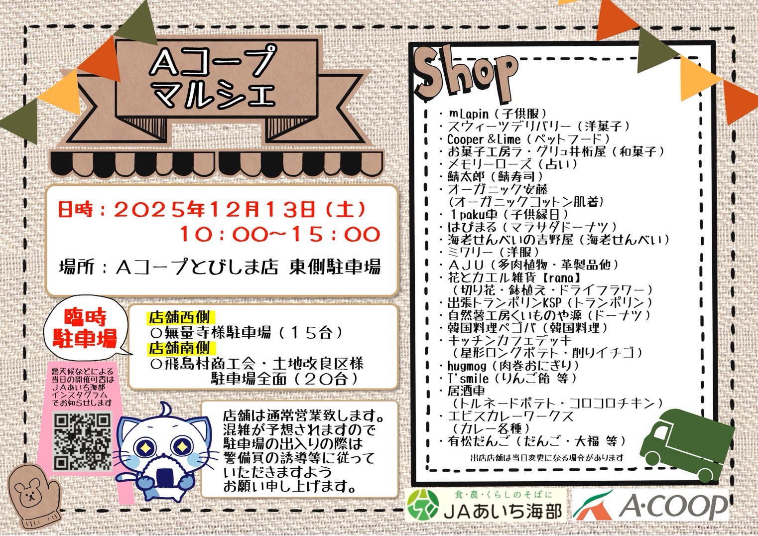 2025.11.2412/13(土)Aコープマルシェ開催のお知らせ